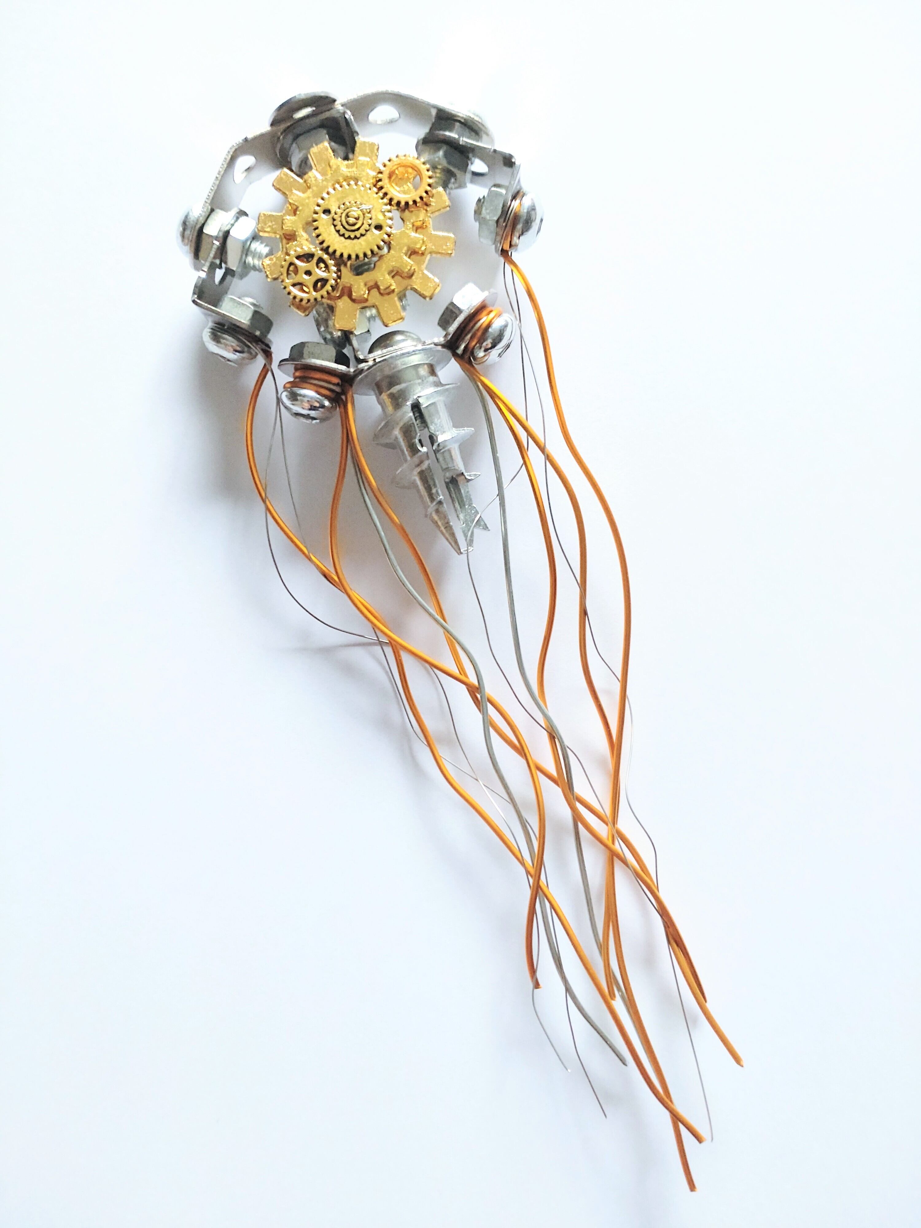 【受注生産】縦9cm✕横13cm✕奥4cmのアクリルパネルオブジェです。アクリルにはメタルパーツで作ったクラゲが接着されておりアクリルでサンドしているため自立が可能です。